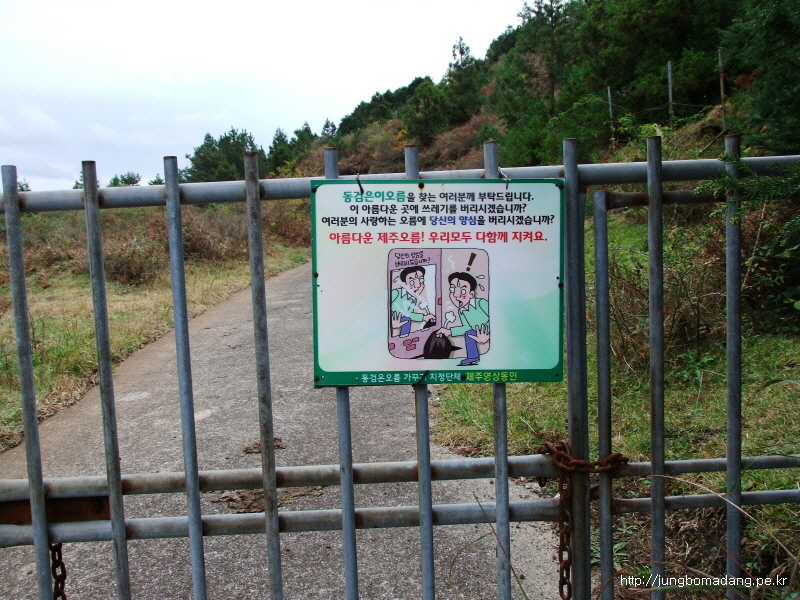 15:44 다시 높은오름 들어가는 도로로 되돌아 왔구요. 나오는 길에 비와서 우산쓰고 오는데 웬 승용차가 스더니 어디까지 가냐고, ㅠㅠ. 배낭이 젖어 감사하다고 인사만 하고 그냥 나왔네요. 이제 슬슬 잘곳도 찾음서 다음 오름으로 가야죠