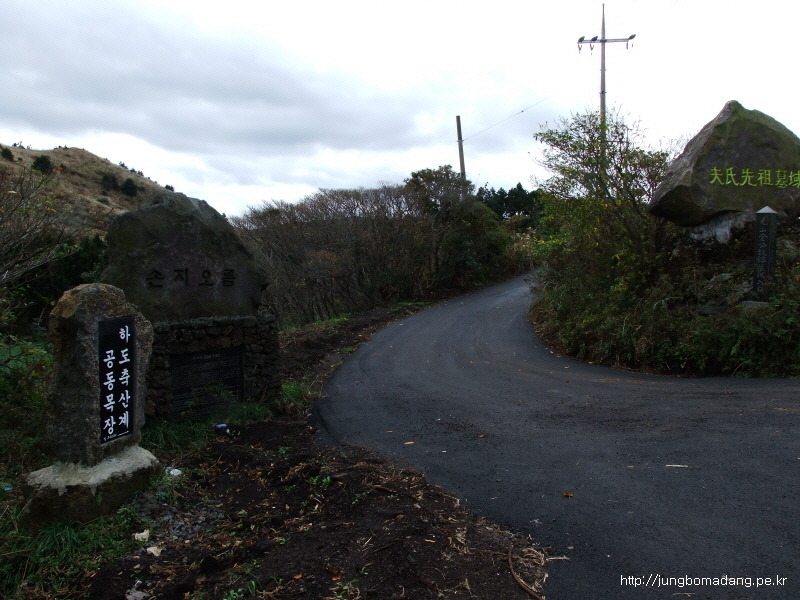 지금은 근처에 있는 동검은이오름으로 가구 있어요
