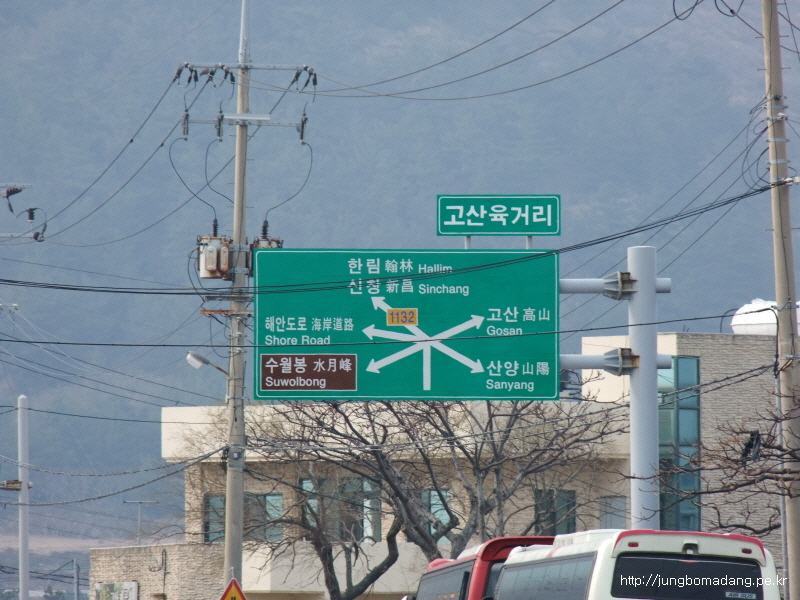 16:30 고산육거리. 여기서 한림, 신창 방면으로 진행한다.