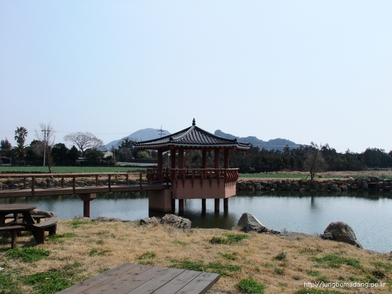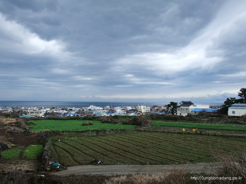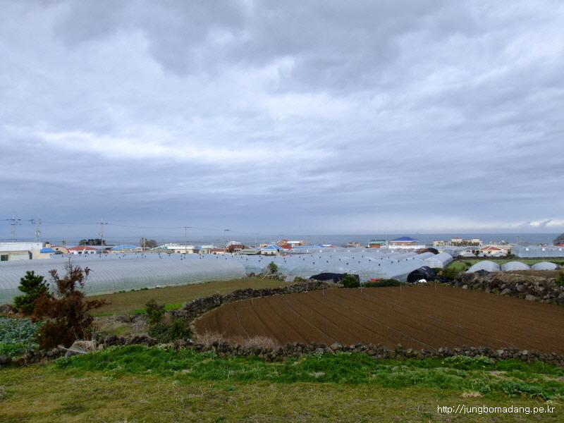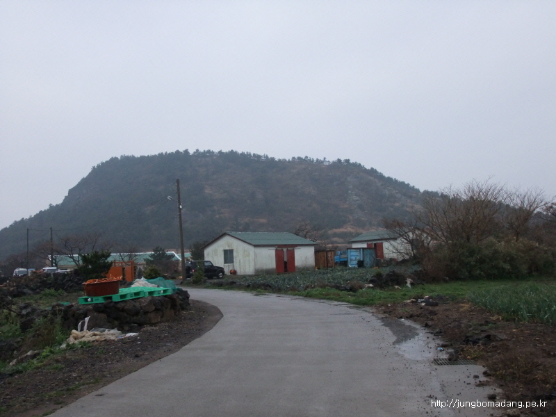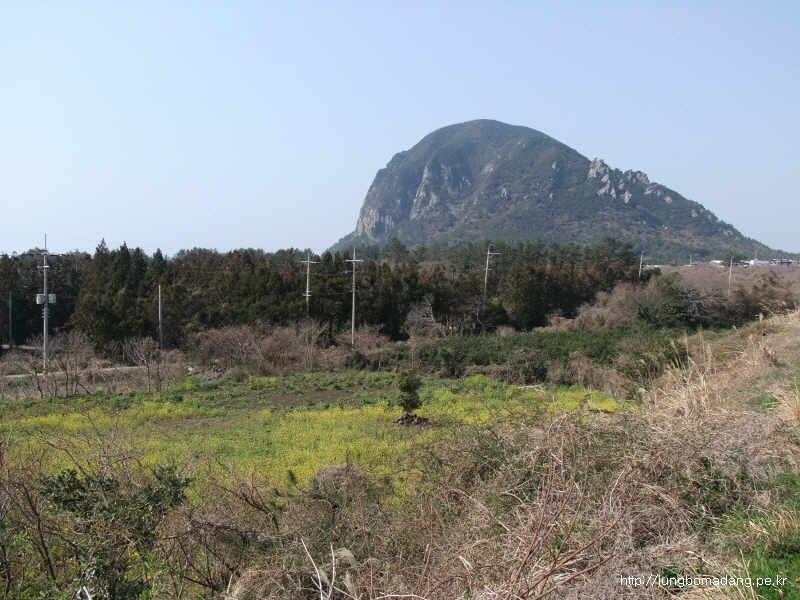정류장 의자에 앉으니 전방으로 수월봉이 눈에 들어 온다.