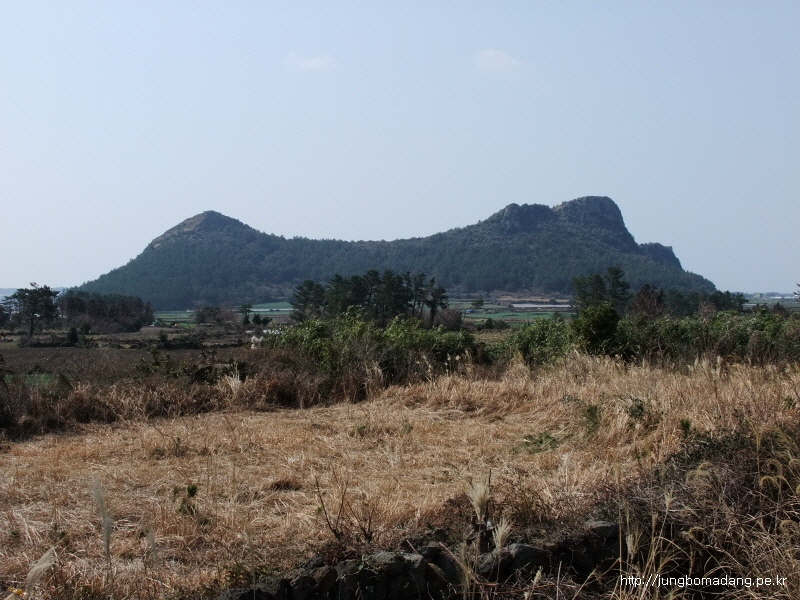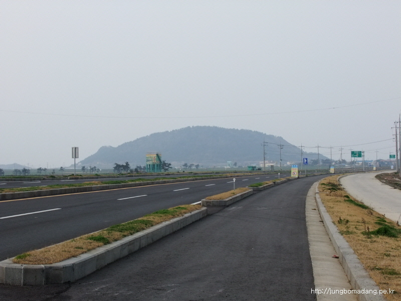 09:25 산방산이 보이기 시작한다. 고산까지 가려면 산방산 옆으로 지나가야 한다.