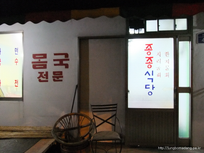 20:50 공항에서 약 40분 거리의 식당. 시장기를 달래러 들어갔는 데, 고기국수(4000원), 몸국(5000원)이 보이는 것이다. 그래서 고기국수를 주문했는데, 낮에 다 팔렸다고 해서 ㅠ.ㅠ 어쩔수 없이 몸국을 주문했다.