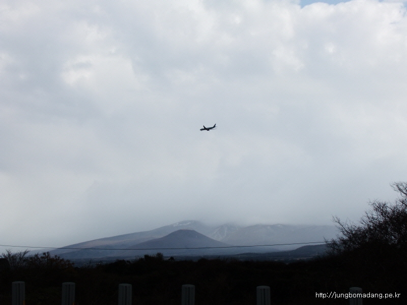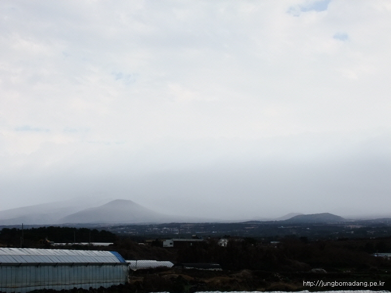 한라산 방면... 한라산측은 구름이 끼어서 정상까지 잘 보이진 않았다. 반대로 얘기하면 오늘 한라산 간 사람들은 이 아래 풍경을 볼 수 없다는 것을 의미한다.
