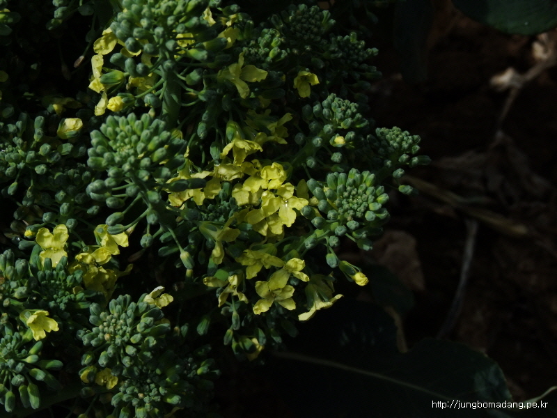 지나가다 유심히 보니 브로콜리에 꽃이 핀 것을 보았다. 아마 수확을 해야하는 데, 시기를 놓쳤거나 상품가치가 없나 방치한 것일지도 모른다.