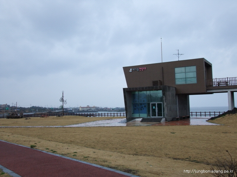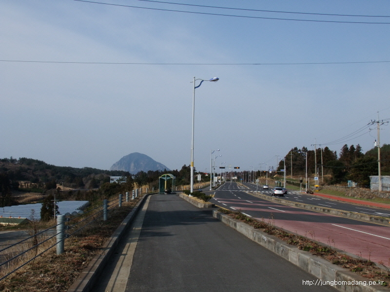 정류장 의자에 앉으니 전방으로 수월봉이 눈에 들어 온다.