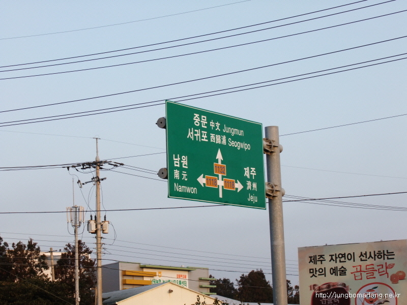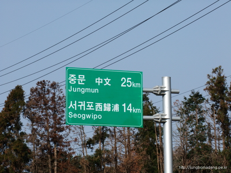 16:10 중문으로 진입하는 삼거리에서 중문쪽으로 진입한다.