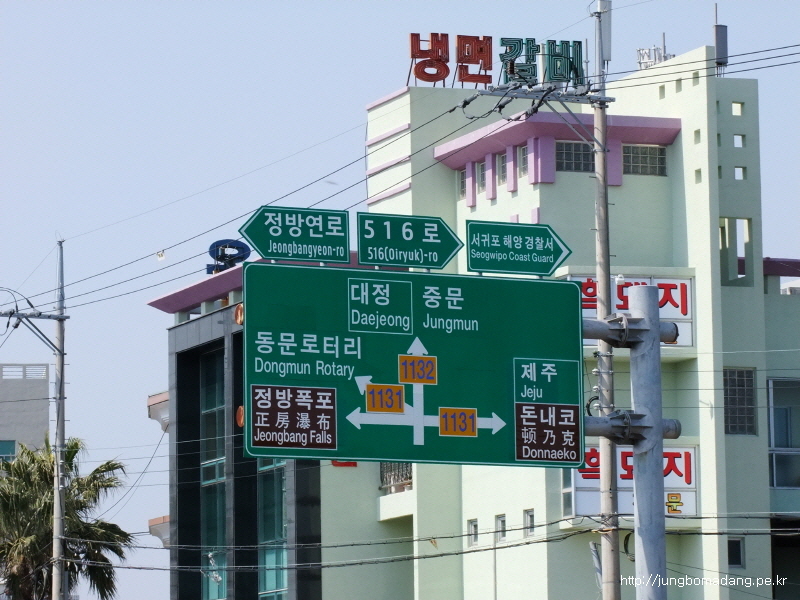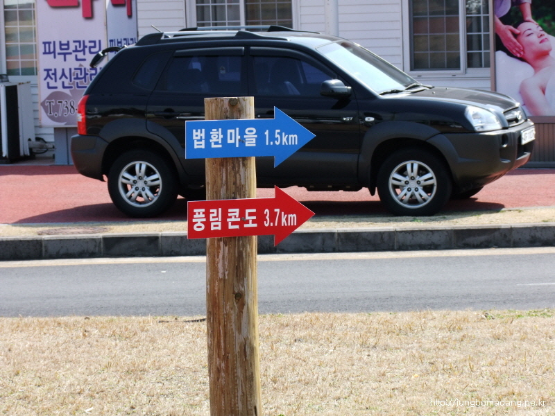 07:22 이정표에 드디어 중문이 보인다. 오늘 목표는 중문까지인데, 과연 갈 수 있을까?