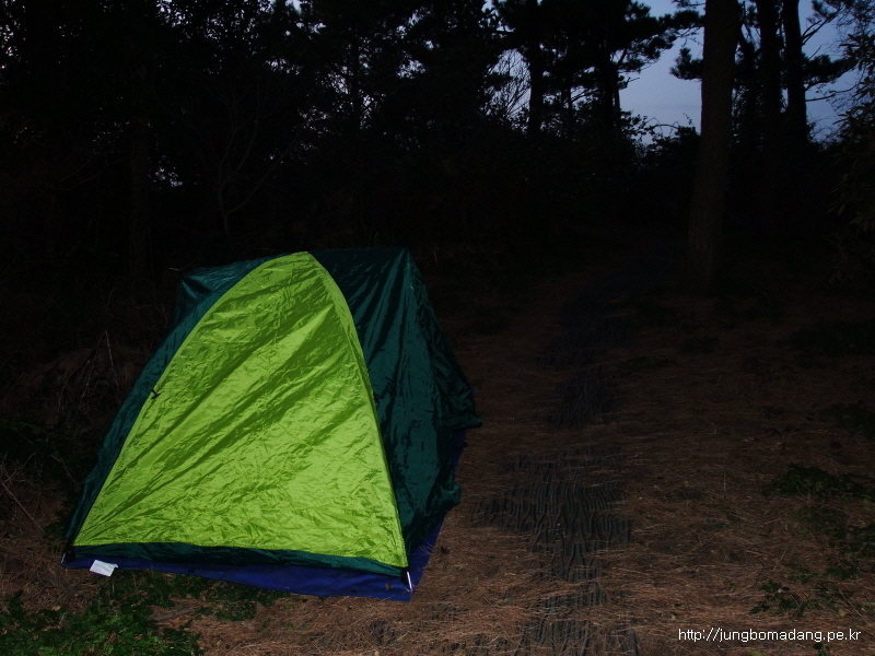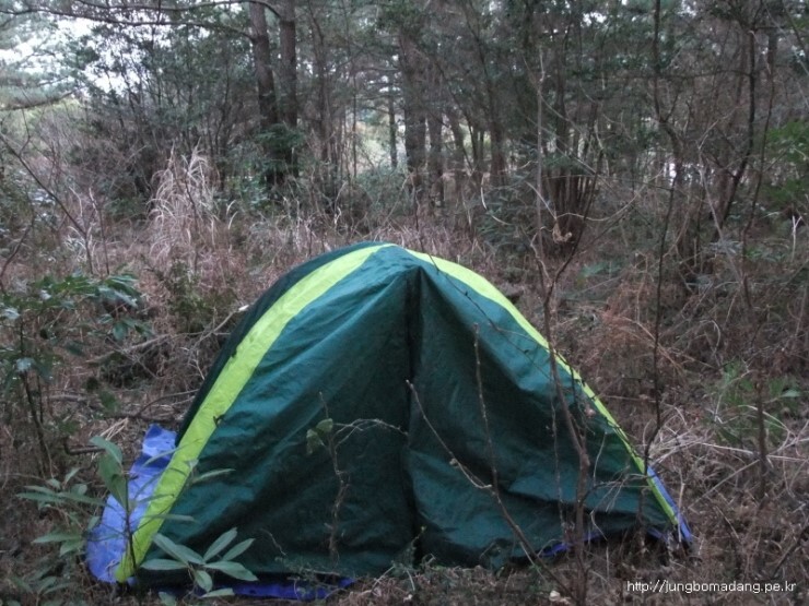 약간 해메이긴 했지만, 다행히 해녀박물관 옆산에 적당한 자리가 있어 텐트를 치기로 한다.