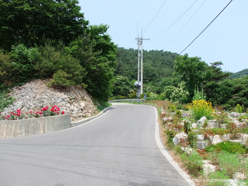 숙박업소에서 심어놓은 꽃들로 길이 화려하다...
