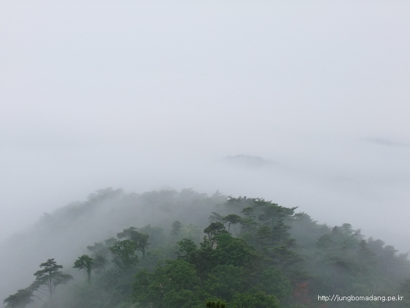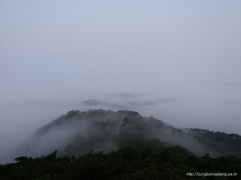 07:40 운해가 걷히길 두시간 가량 기다리다 도저히 안되겠어 그냥 하산하기로 한다. 오늘 일정도 진행해야하기에... 일단 송이산까지 가서 지켜보는 걸로!