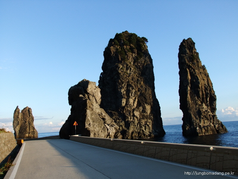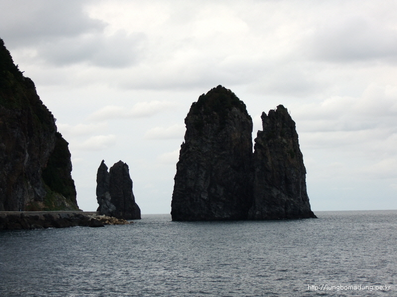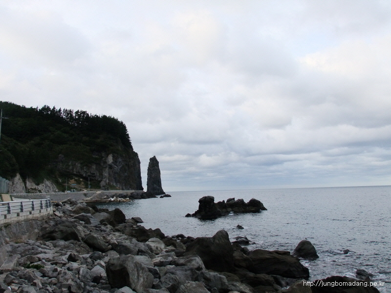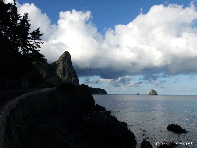 저동항쪽으로 진행하면서 바라본 촛대암(촛대바위)
