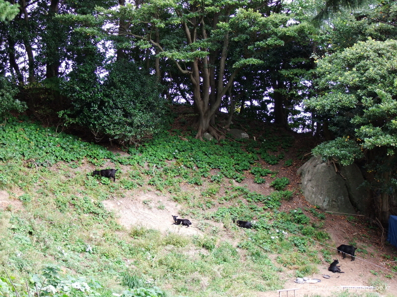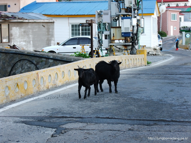 등대를 나와서 원래 길로 가다가... 한가로이 풀을 뜯는 흑염소들을 보게 된다. 매에~~(꽁초 함부러 버리는 사람한테는 매가 약이라고? ㅎㅎ)