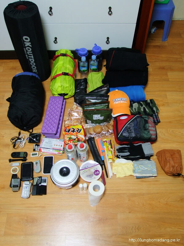 여행 전날 울릉도 여행에 필요한 물품을 사열해본다.