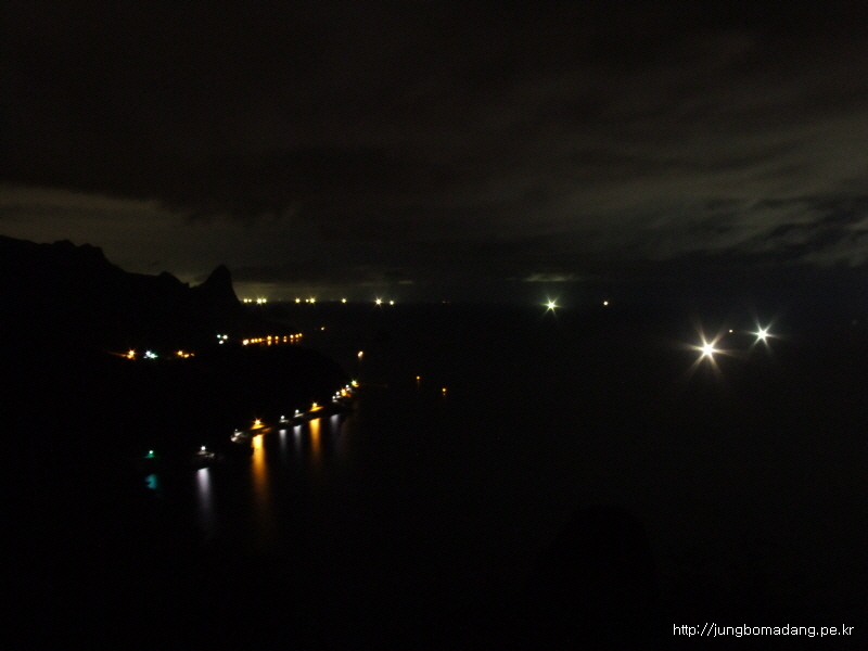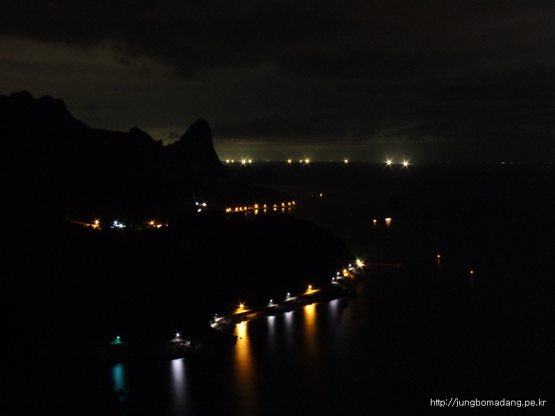 바다에 보이는 불빛은 오징어잡이배인 듯하다...