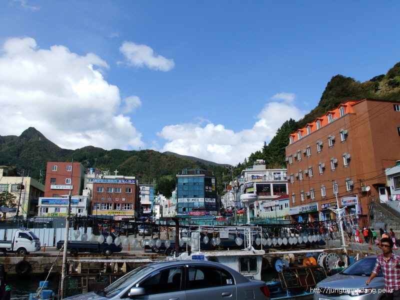 11:35 도동항에 도착!. 좁은 선체 계단을 따라 나오느라 조금 시간은 10분이상 지체되고... 밖으로 나오니 다행히 날씨는 좋다.
