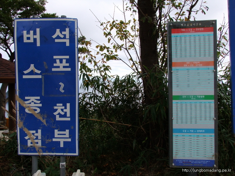 07:56 천부정류장. 눈앞에 보이는 버스는 내수전으로 가는 버스고, 나리분지행 버스는 정류장 우측 공터옆에로 정차한다.