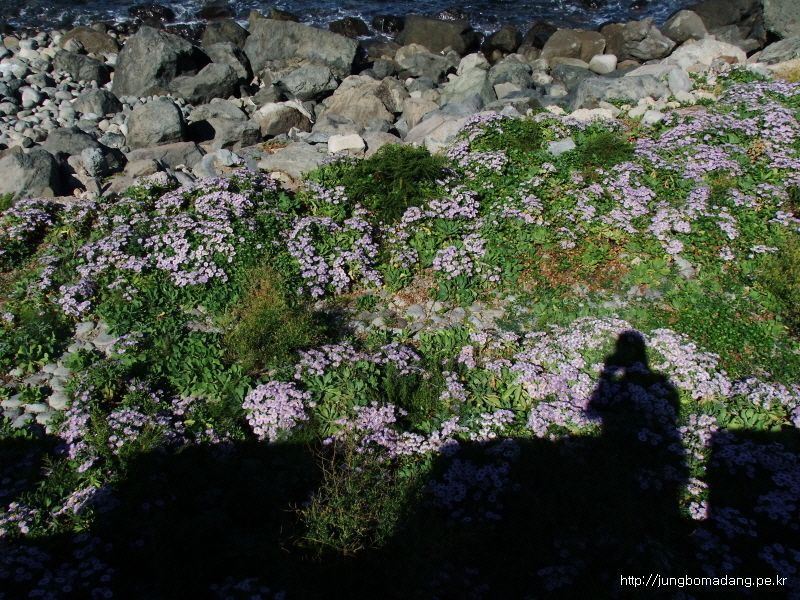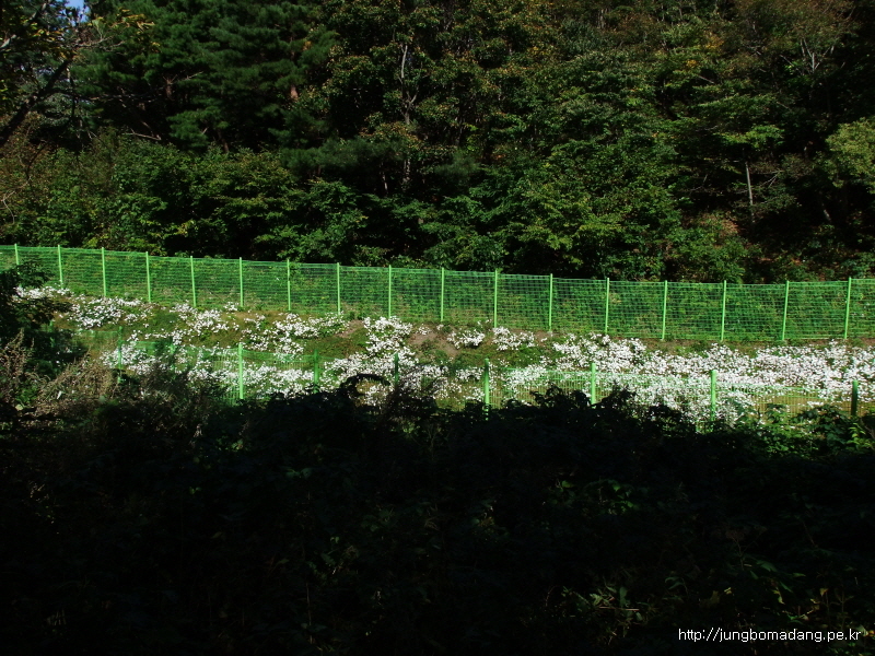 보호울타리 안쪽으로 하얀 울릉국화들이 예술이다!