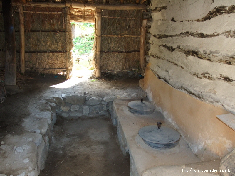 나무판자와 올리고 무거운 돌로 고정하던 그런 희안한 집..