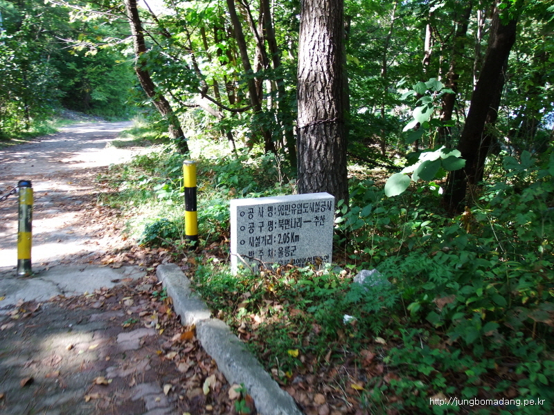 관리사무소에서 하수처리장을 지나 콘크리트길따라 쭈욱~ 추산리로 하산하기로 한다.