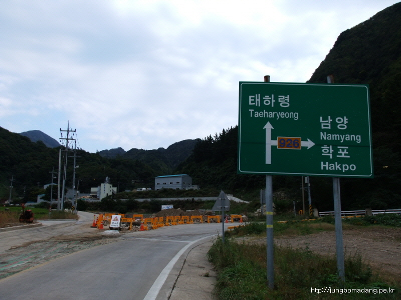 15:47 갈림길... 직진하면 태하령, 우측길은 남양으로 가는 길... 지금은 일단 남양 학포 방면으로 진행한다. 만물상전망대를 만나기 위하여....