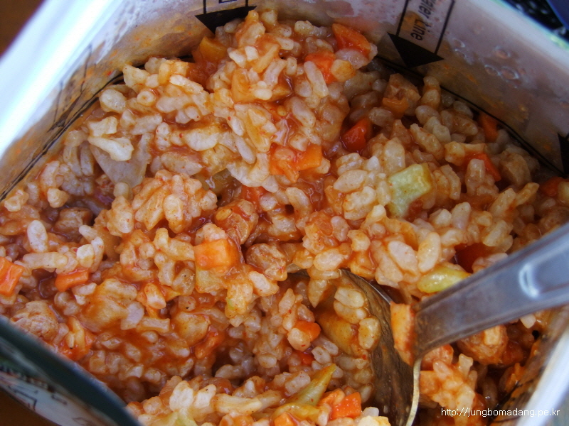 11:48 하수처리장 앞 쉼터에서 뜨거운 물로 아침 겸 점심으로 전투식량을 폭풍흡입한다.