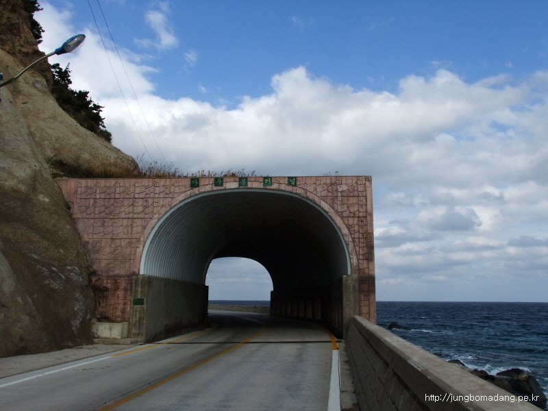 10:10 태하령 정상부에 다다를 무렵, 도로 옆 벽이 무너진 것을 발견했다. 그냥 지나칠 수도 있지만, 울릉군청에 전화해서 조치 바란다고 신고하고 내 갈길을 계속 갔다.