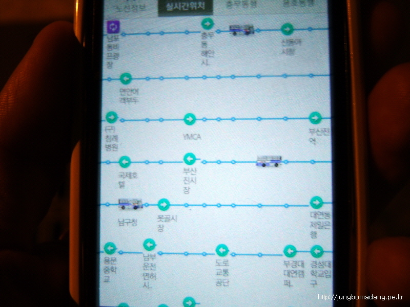 부산버스 어플로 보니 전정류장(부산진시장)으로 오는 버스가 보이네요. ^^