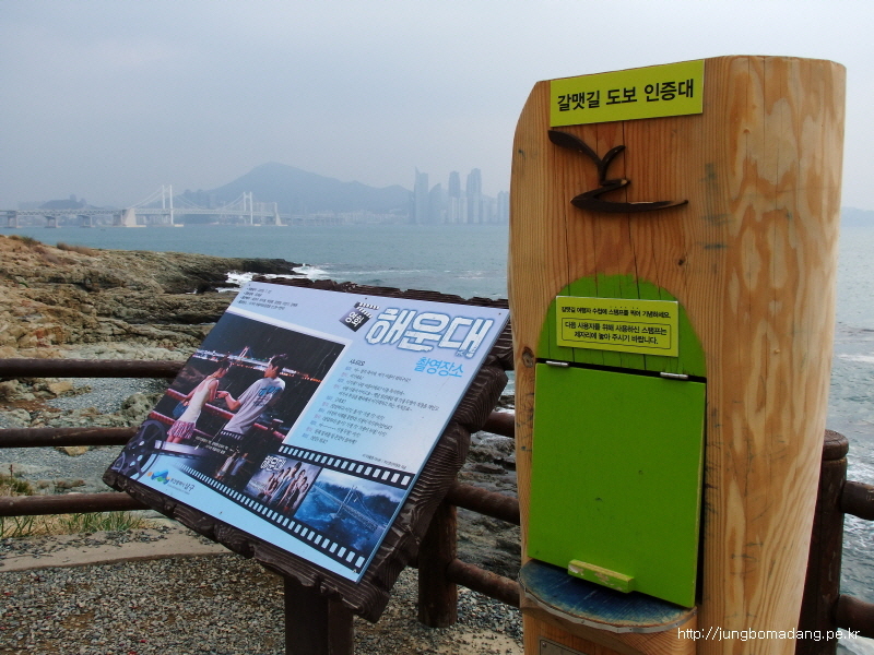 이렇게 갈맷길 도보 인증대도 있습니다. 수첩 한켠에 도장을 심심해서 찍어줍니다. ㅎㅎㅎ