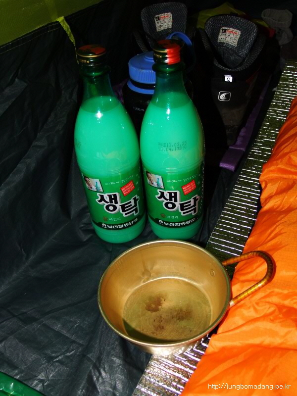 18:52 텐트 치고 안에서... 막걸리 2병과 마주합니다.