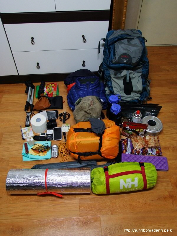 3/23 떠나는 건 내일 퇴근후이지만, 퇴근하고 짐을 꾸리기엔 정신 없을 듯 해서, 미리 전날 이쁘게 꾸려놓습니다. 배낭 패킹 무게는 15Kg정도 됩니다.