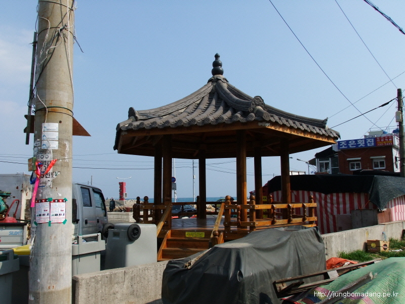 16:46 기장체육관 앞 정자에서 잠시 고민을 때립니다. 일광해수욕장까지 가지 말고 여기서? 그런데 바람소리에 체육관에서 귀를 자극하는 쇠 부딪히는 소리가 나고 그래서 그냥 목적지까지 이동하기로 합니다...