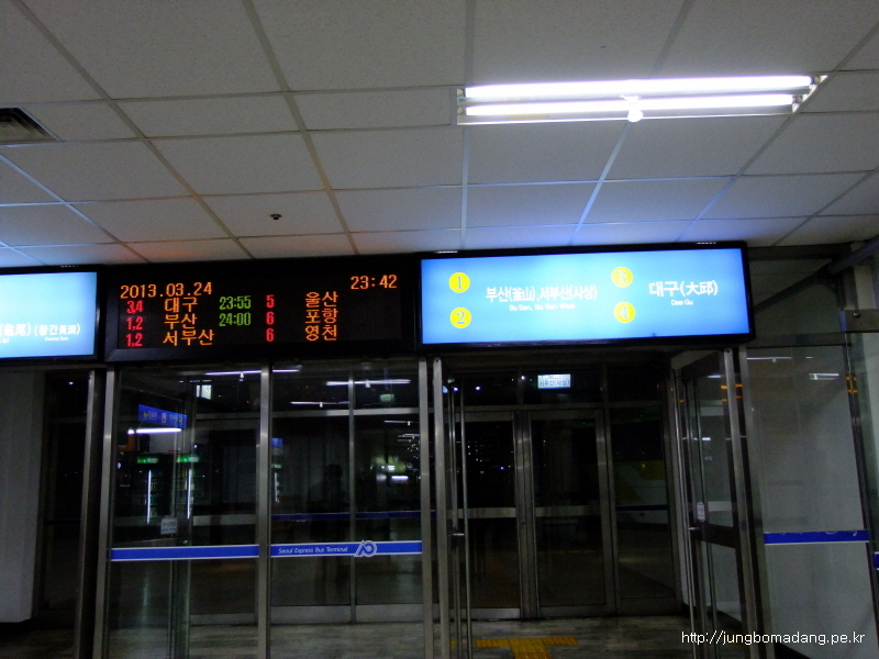 3/24 23:42 강남 고속터미널에서 부산행 버스에 오릅니다.