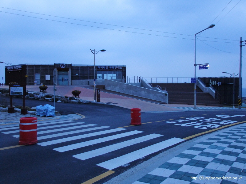 아직 어둑어둑한데, 일출 예상시간이 6시 20분이라서 살짝 일출에 기대를 할 것 같지만, 날이 흐려서 일찌감치 일출은 포기합니다. 바로 앞에 해파랑길 관광안내소가 보입니다.