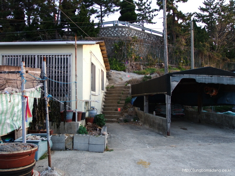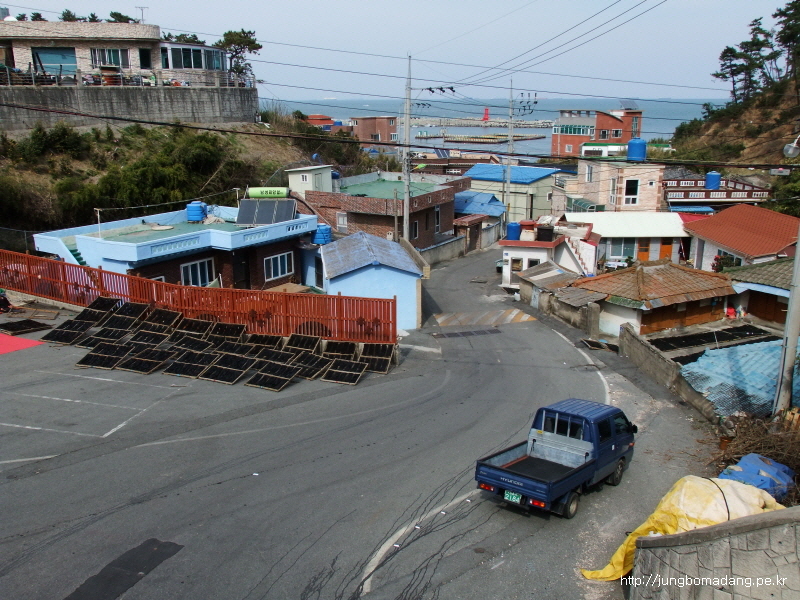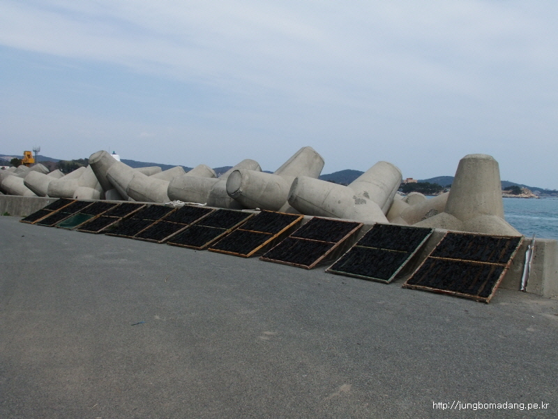 도로 난간에는 이렇게 미역 말린 자욱이 선명하고용...