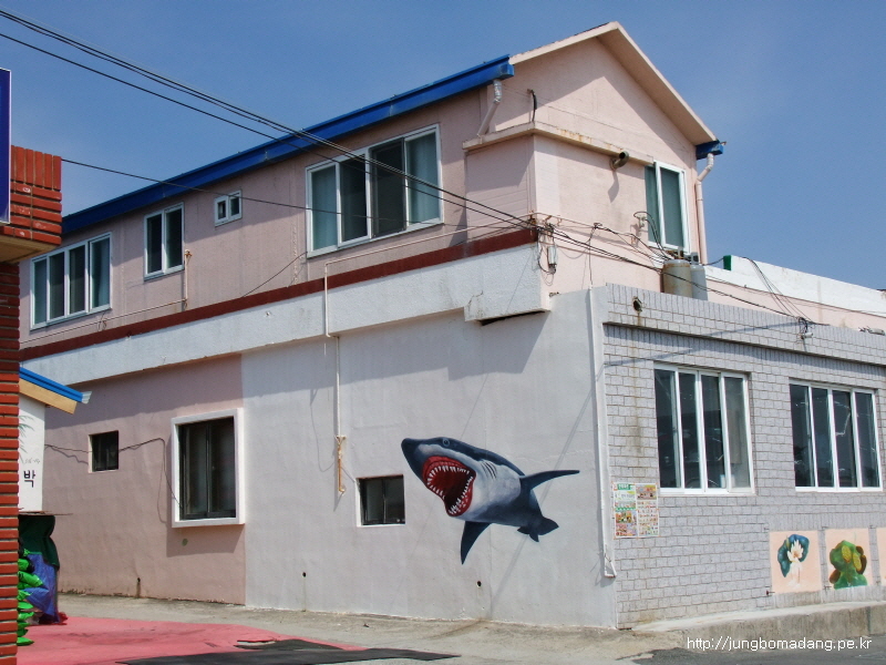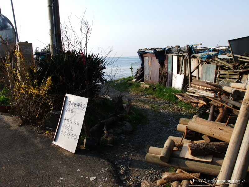도로 난간에는 이렇게 미역 말린 자욱이 선명하고용...