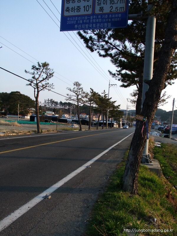 해파랑길 안내처에서 가지 말라는 송림입니다. 가다보면 금줄 쳐놨으니 아예 좌측 도로로 우회하는 게 좋아용 ^^