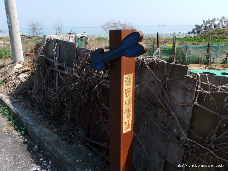 아~ 여긴 강동사랑길이네요? 이 코스에서는 강동사랑길중 해변따라 가는 길과, 산길로 우회하는 길 두가지가 있는 데, 저는 그냥 해변따라 가는 길로 택했습니다...
