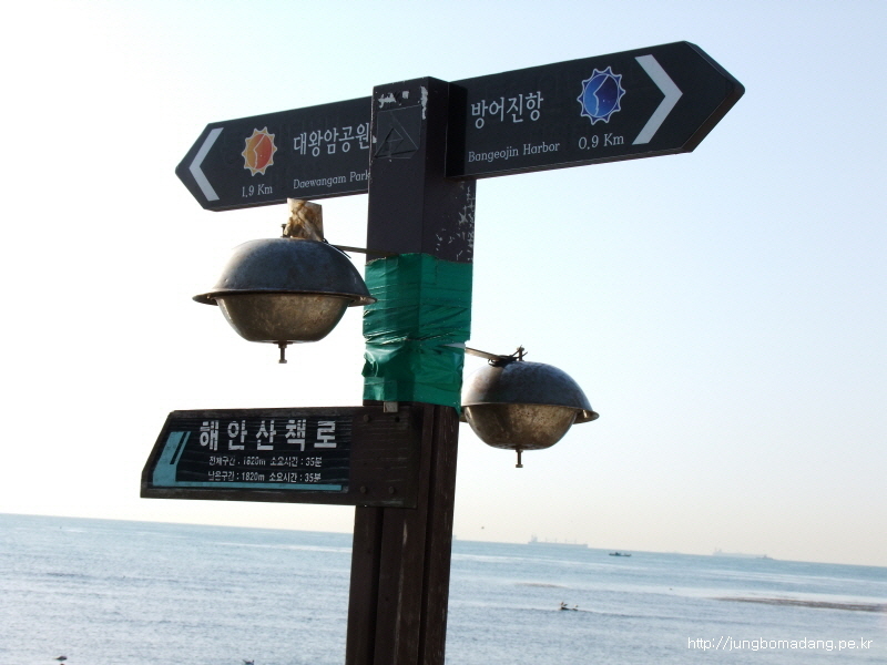 08:18 슬도 앞에 이정표... 제가 갈 대왕암공원 찜해두고, 잠시 슬도에 다녀올랍니당 ^^. 가방은 여기 잠시 키핑 ㅎㅎㅎ