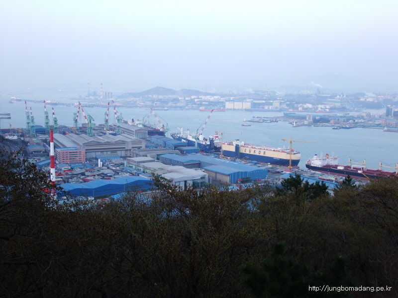 현대 미포조선소의 모습이 보입니당. 아시다 시피 미포 조선소는 배를 만드는 곳이 아니라 수리하는 곳입니다. ^^
