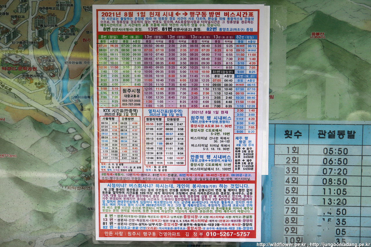 시내에서 이 곳(성문사, 국형사)으로 오는 버스 시간표도 참고.