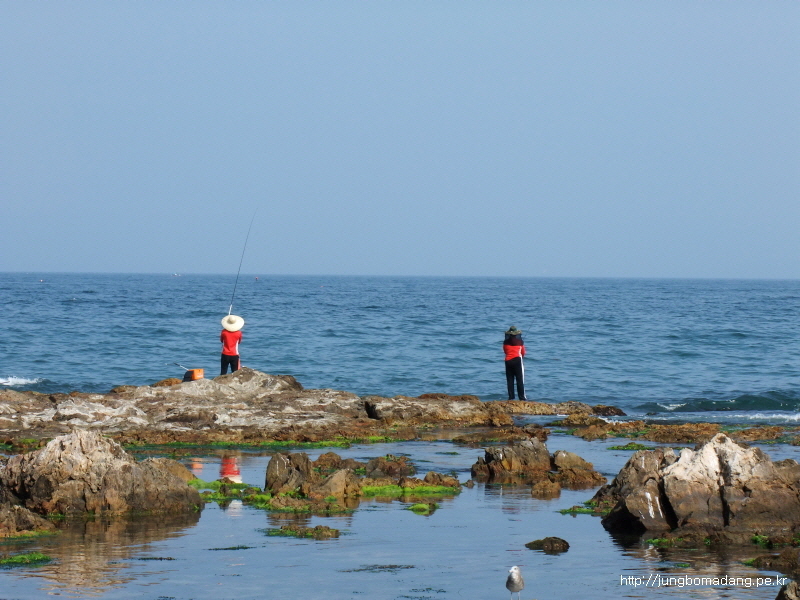 이렇게 젖은 부분을 딛으니까 좀 낫네요... 파도를 피하는 재미도 있구요