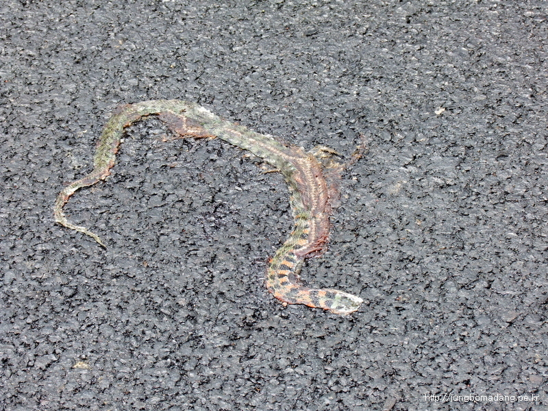 컥~ 로드킬 당하다 못해 바싹 말라버린 꽃뱀 사체...