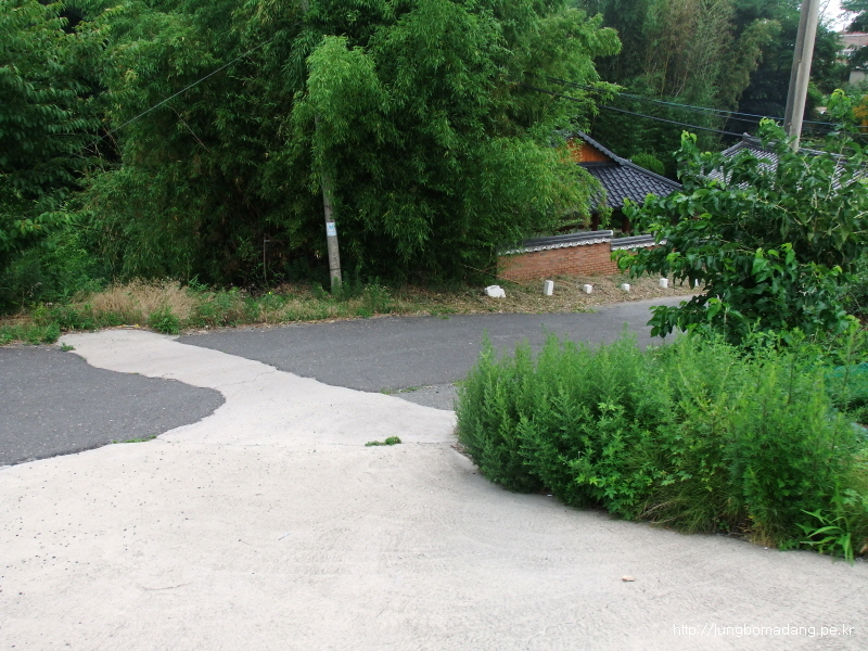 앞에 정자는 보이지만, 저흰 우측에 골목으로 들어가야 합니다.