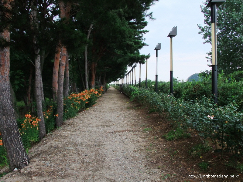 공원 안쪽이 훨씬 좋은 겁니다! 왜 이길로 안내했을까요?? 그냥 융통성있게 안쪽으로 진행할 껄 그랬습니다. ㅠㅠ 금강송들이 멋드러진 저 길을 걷고 싶은데....