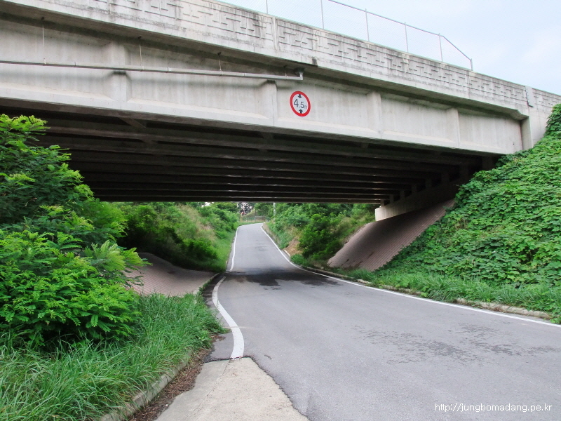 아래 다리가 보이면 우측으로 갑니다. 반사경있는 도로쪽으로용