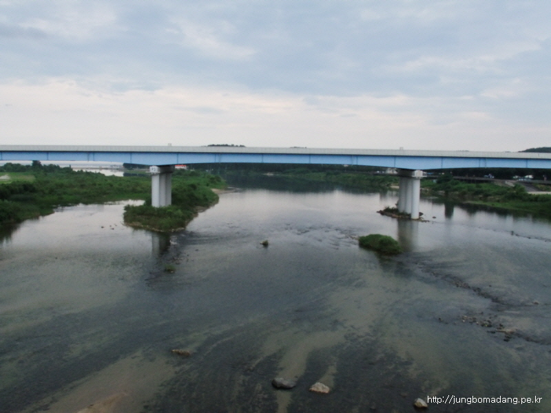 14:58 초평교를 지납니다... 아~ 지금 비가 내리는 중입니다. 많은 양은 아니지만, 비가 오면 덥지 않아 좋긴 한데, 옷이 젖으니 영~ 이제 택배도 부쳐서 옷도 단벌인데 ㅠㅠ