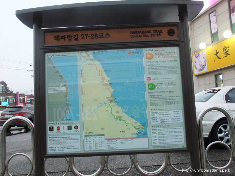 19:10 샤핑을 마치고... 해파랑길 안내판에서 28코스 시작을 찍고, 진행방향으로 이동합니다.