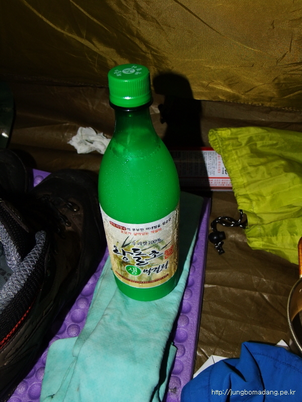 그렇게 맛나게 막걸리를 호떡빵 몇개를 안주삼아 헤치우고는 어깨를 불찜질하고 취침을 합니다. 확실히 3키로 배낭이 가벼워지니까 발걸음도 더 가벼워졌습니다. ^^