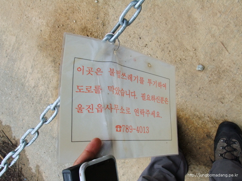 이곳은 갈림길에 원래길은 폐쇄되어, 좀더 앞에 보이는 리본길로 이동합니다.