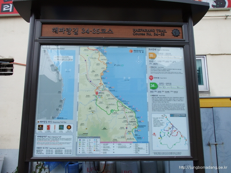 | 34코스 | 19.2 | km | 42.5 | 42.5 | 묵호역 - 5.1KM - 대진항 - 2.9KM - 망상해변 - 11.2KM - 옥계시장(우천시 2시간후 금진항 지나 헌화정 정자) |